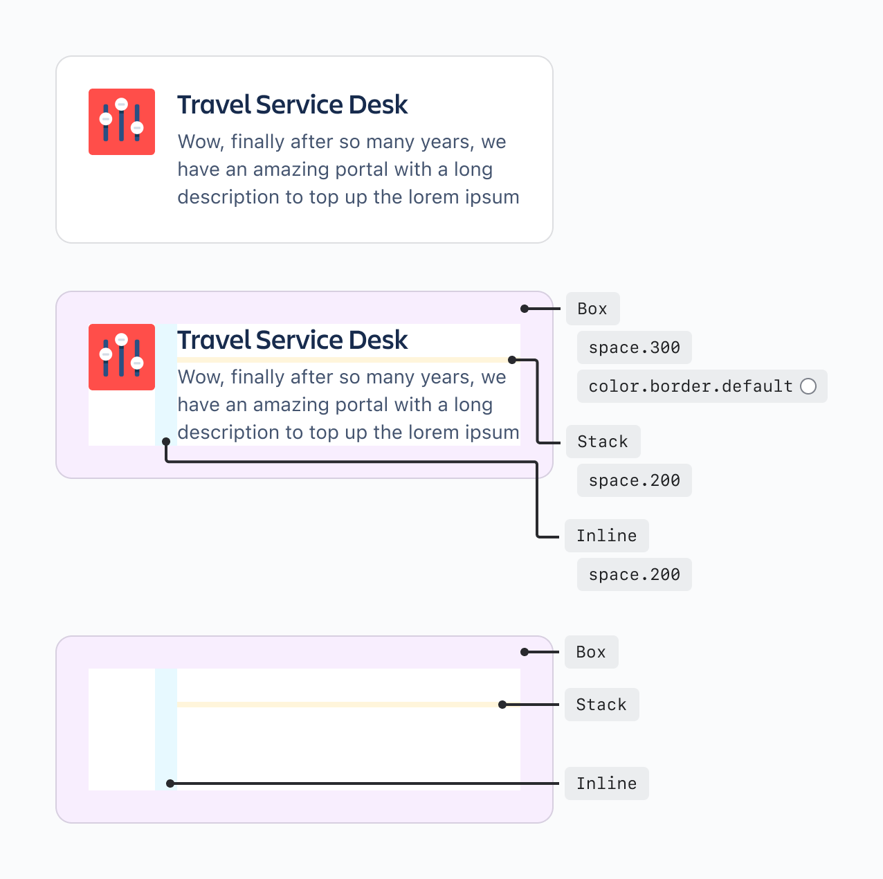 When working in Figma a designer is combining the concept of a box as a container with either an inline or stack to create layouts. In code, these layers are represented separately, with a box often being an outer container with an inline or stack nested inside (with potentially more nested primitives inside).