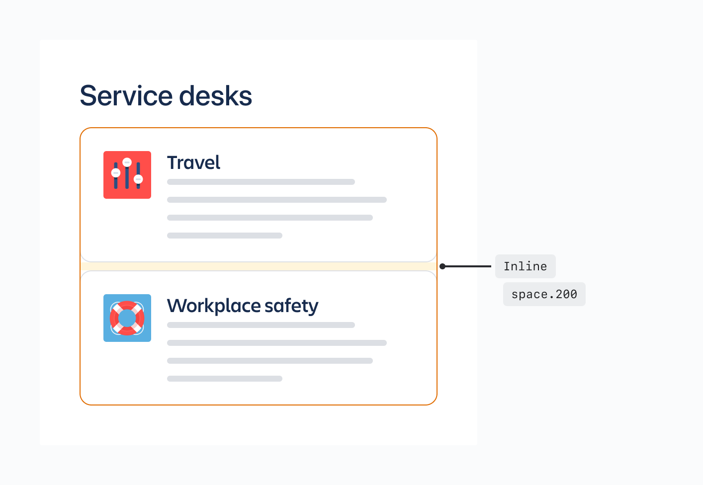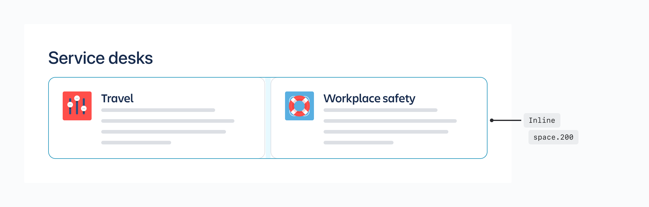 In the example below, an inline contains the card components and sets the horizontal spacing between them.