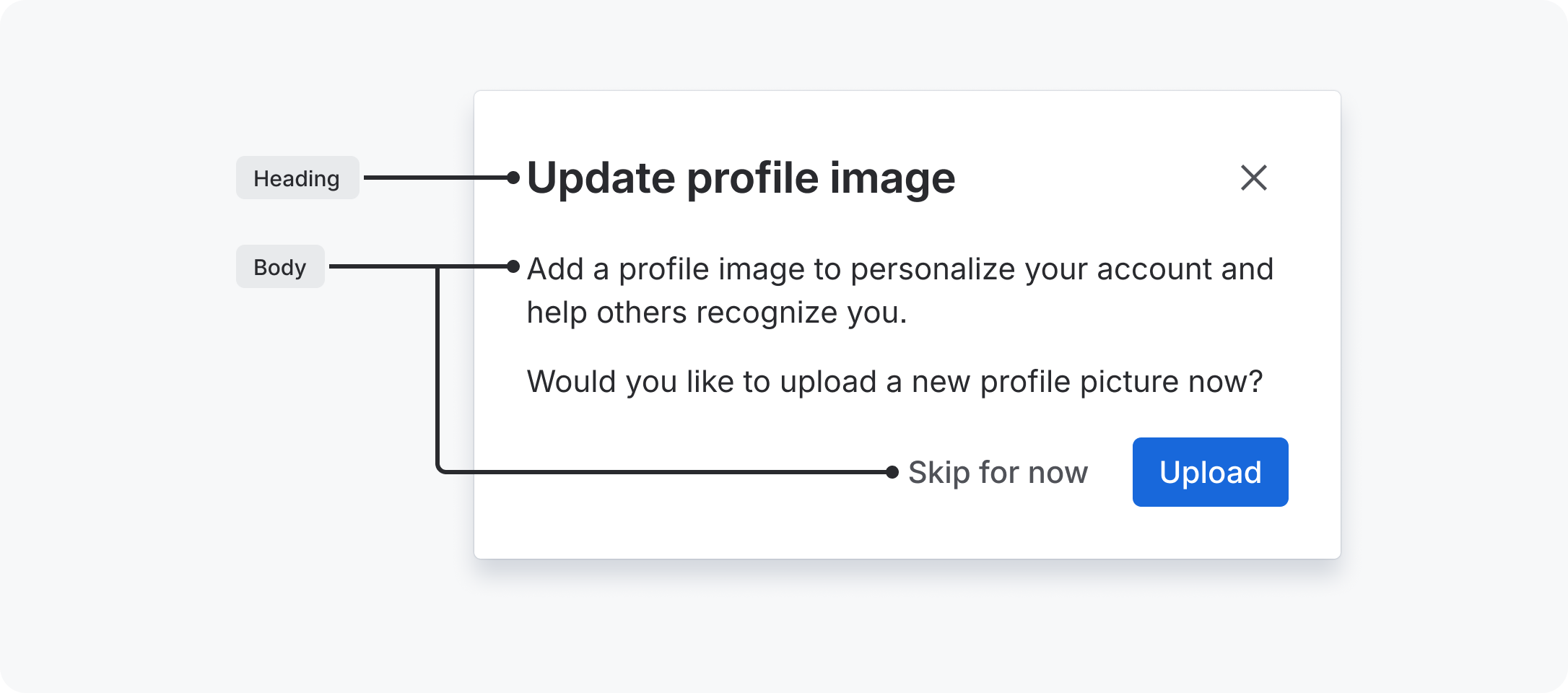 Use body text for main content. They typically appear after headings or subheadings as detailed descriptions and messages, but also as standalone text in components. Body text includes additional paragraph spacing for readability and flow in blocks of text.