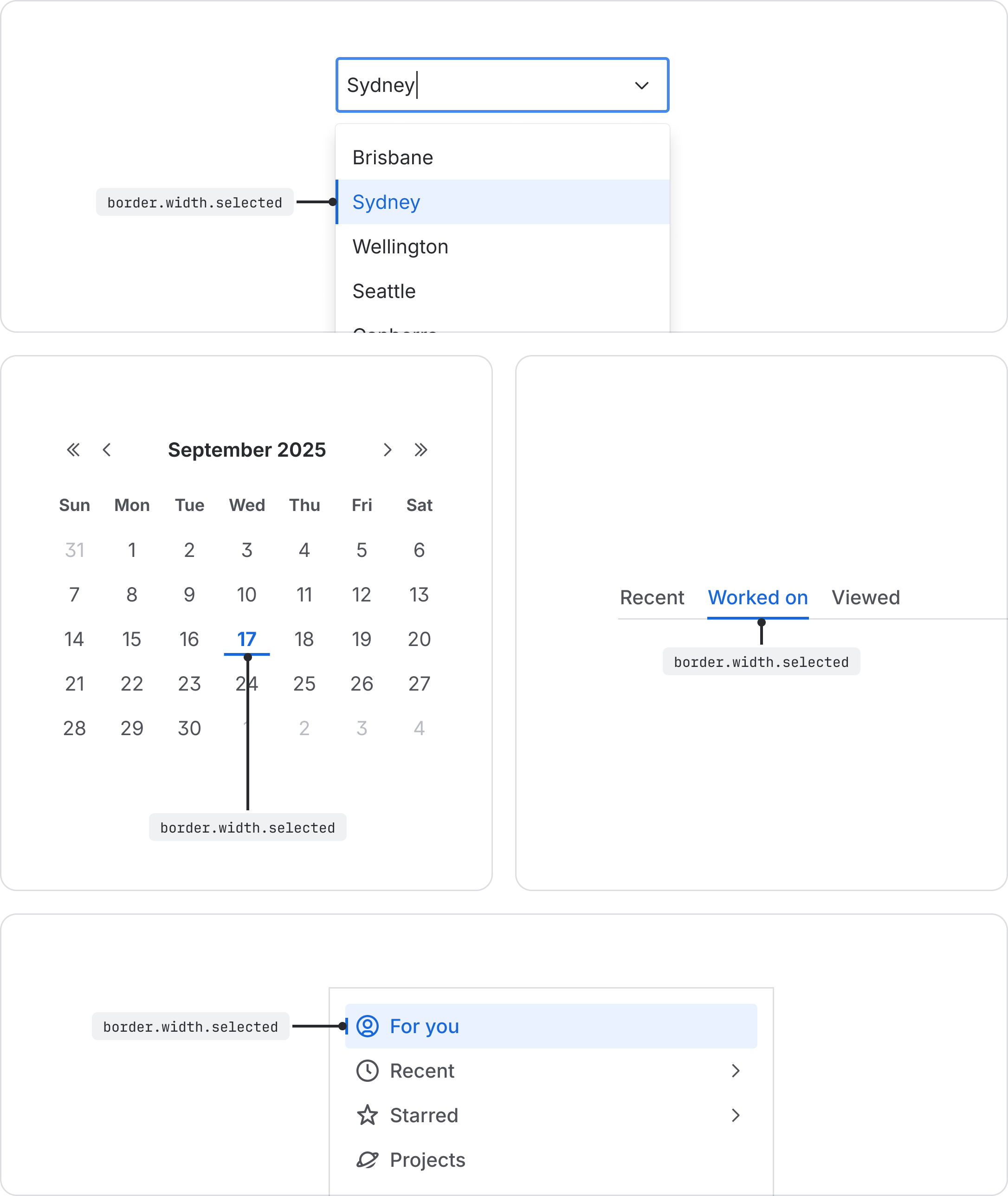 Use border width tokens to provide a clear and intentional way to apply width across different states and use cases.