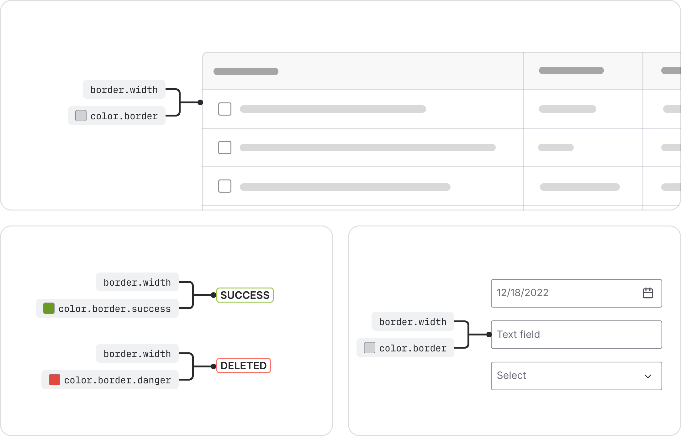 Define boundaries, separate components, and add visual emphasis with border tokens.About border tokens