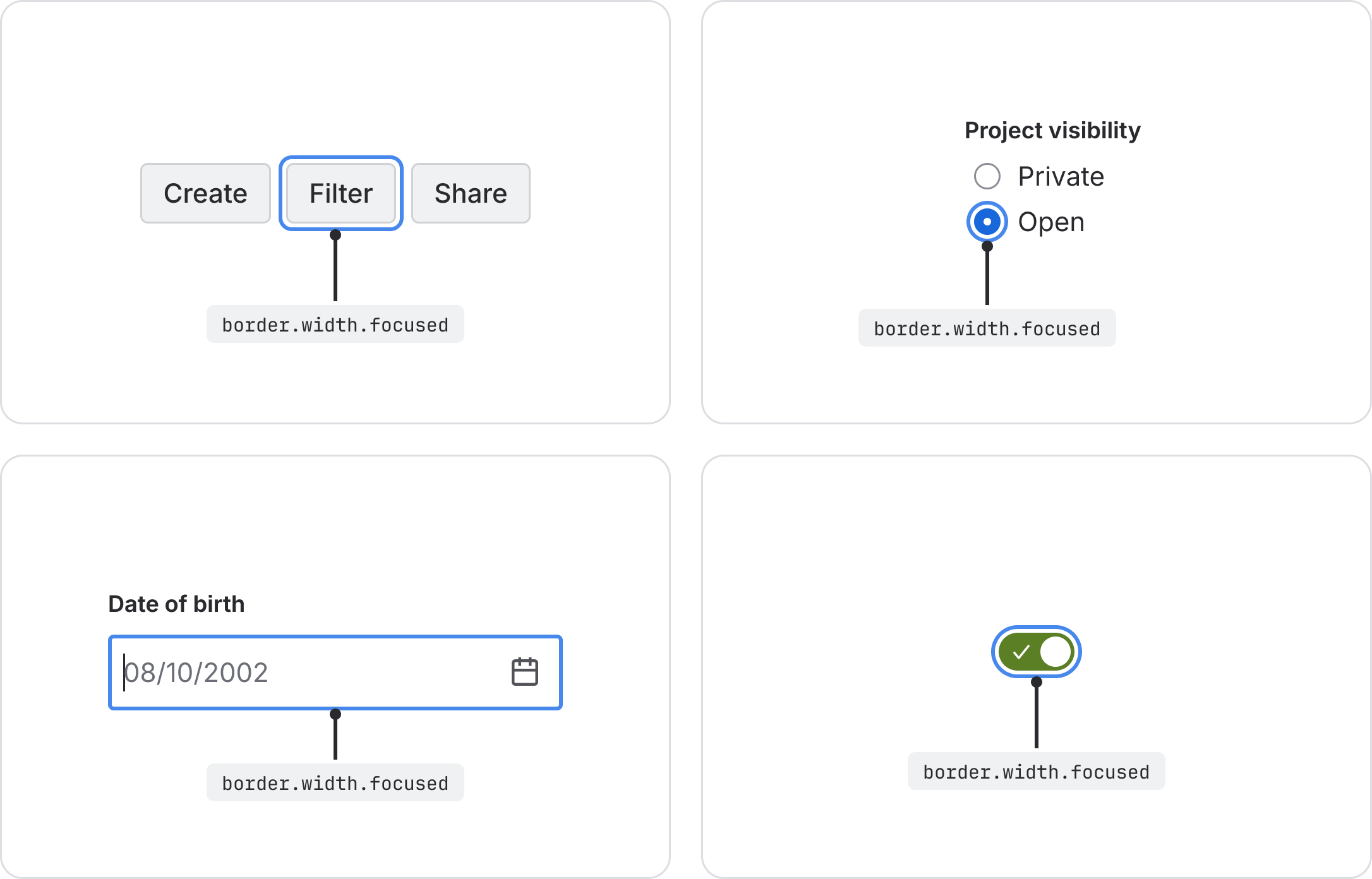 Always pair the right width token with the right color token to keep your interface consistent and clear for users.