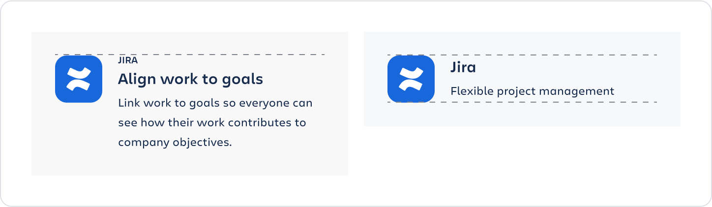 - Write the name of the app (product)/property and Atlassian in the alt-text for in digital experiences.